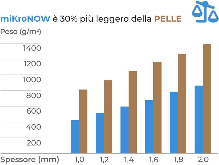 Traspirabile e morbido: a parità di spessore ha maggiori resistenze meccaniche rispetto alla pelle e un peso inferiore del 30%.