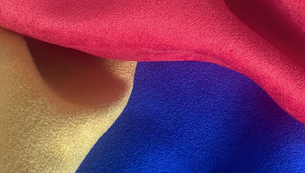 Nella sezione del filato dello Suede si possono distinguere la island, ovvero la fibra rotonda, e il sea che è rappresentato dal poliuretano che sta in mezzo alle fibre.